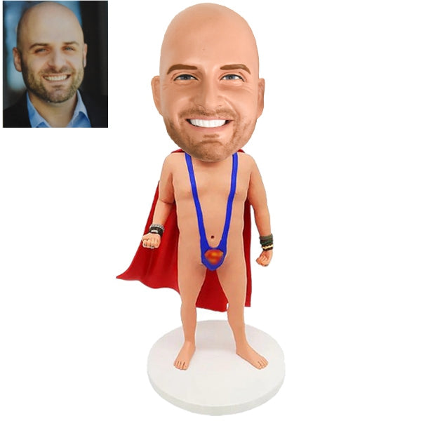 Custom Superman Bobblehead with mankini, red cape unique Superhero gift